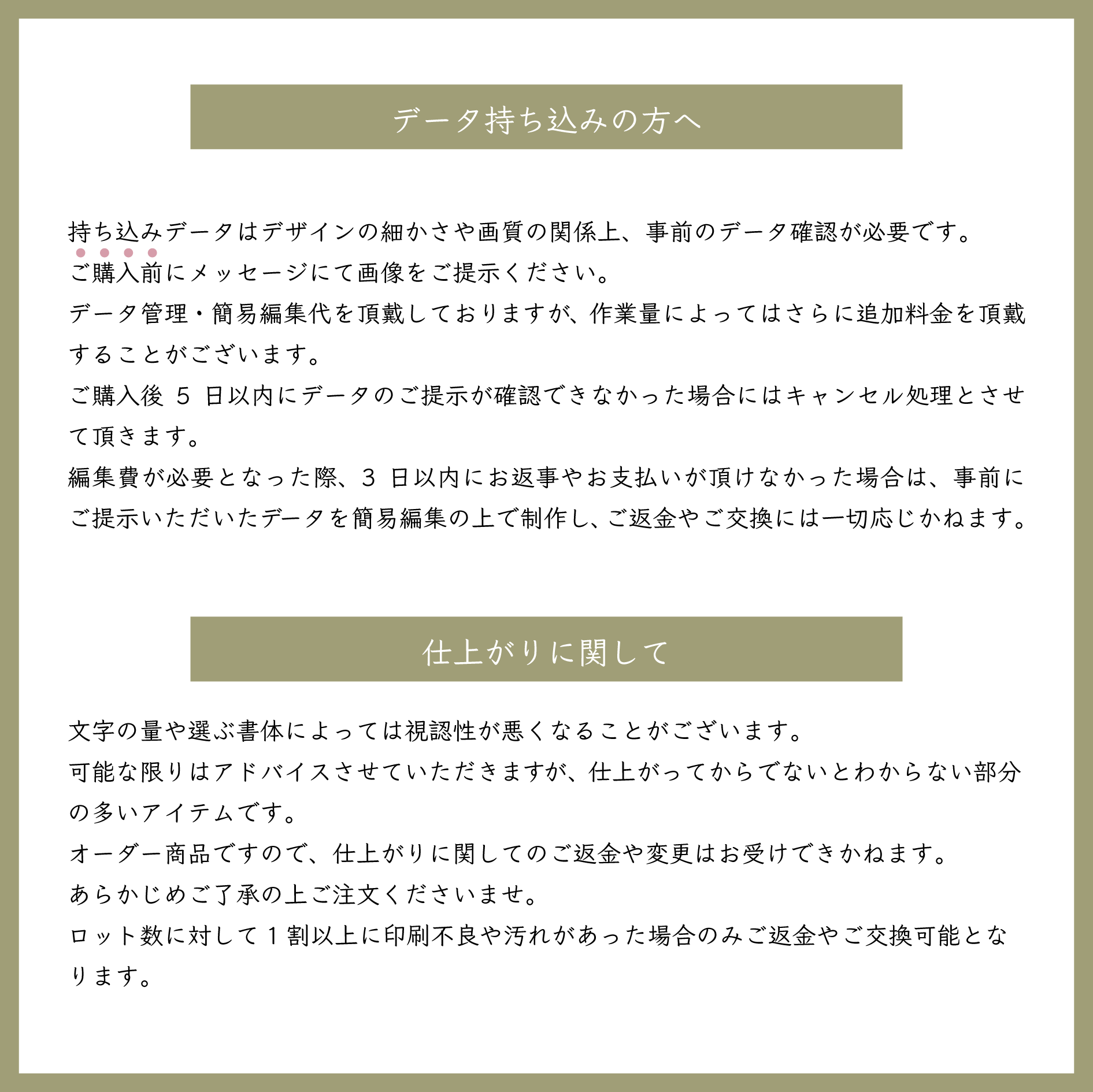 ※ロット数に対して一割以下の枚数の印刷不良はご返金対象外です。