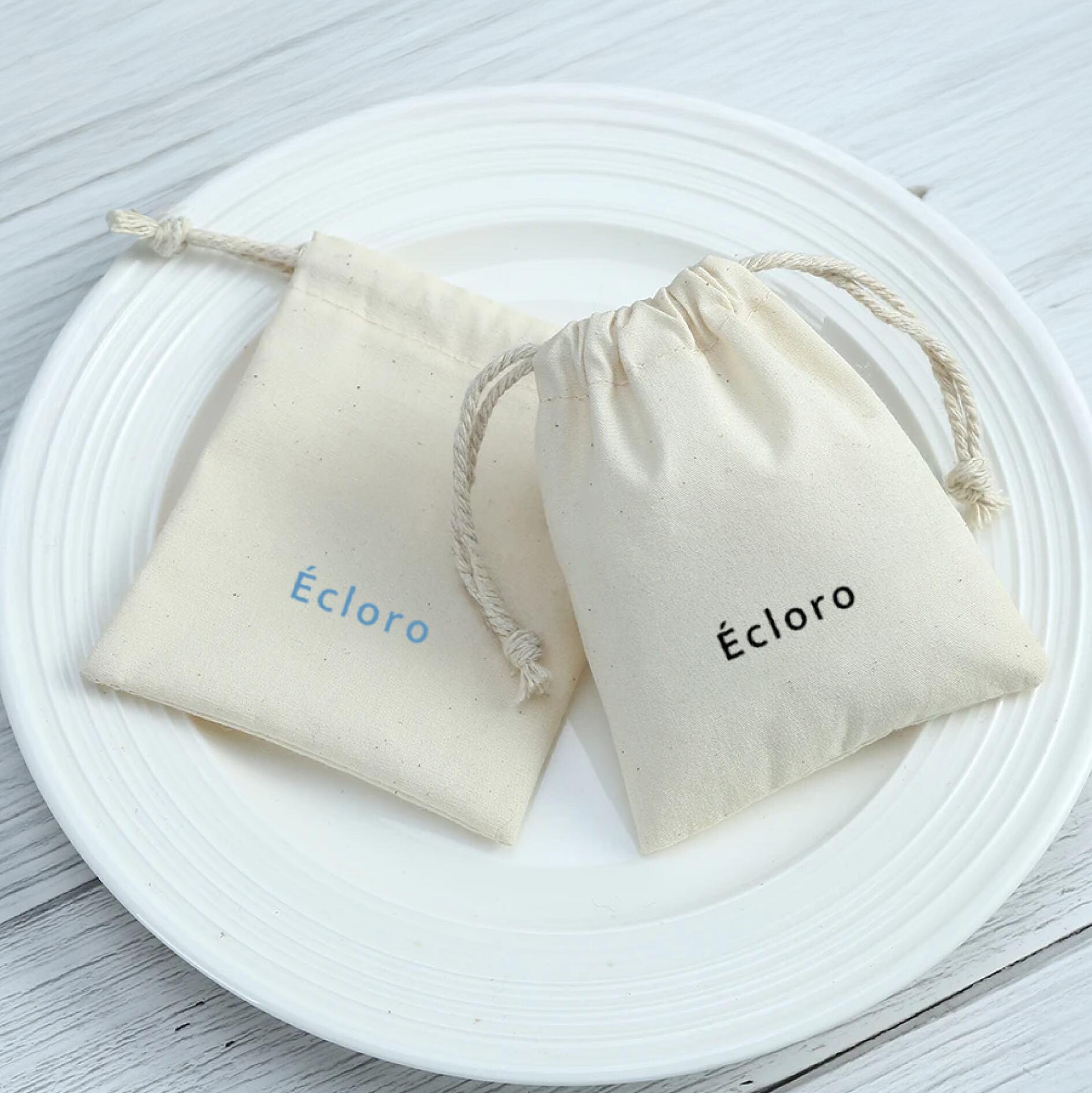 ナチュラルな風合いのコットン巾着はシンプルなフラット型とふんわりかわいいギャザー型をご用意!