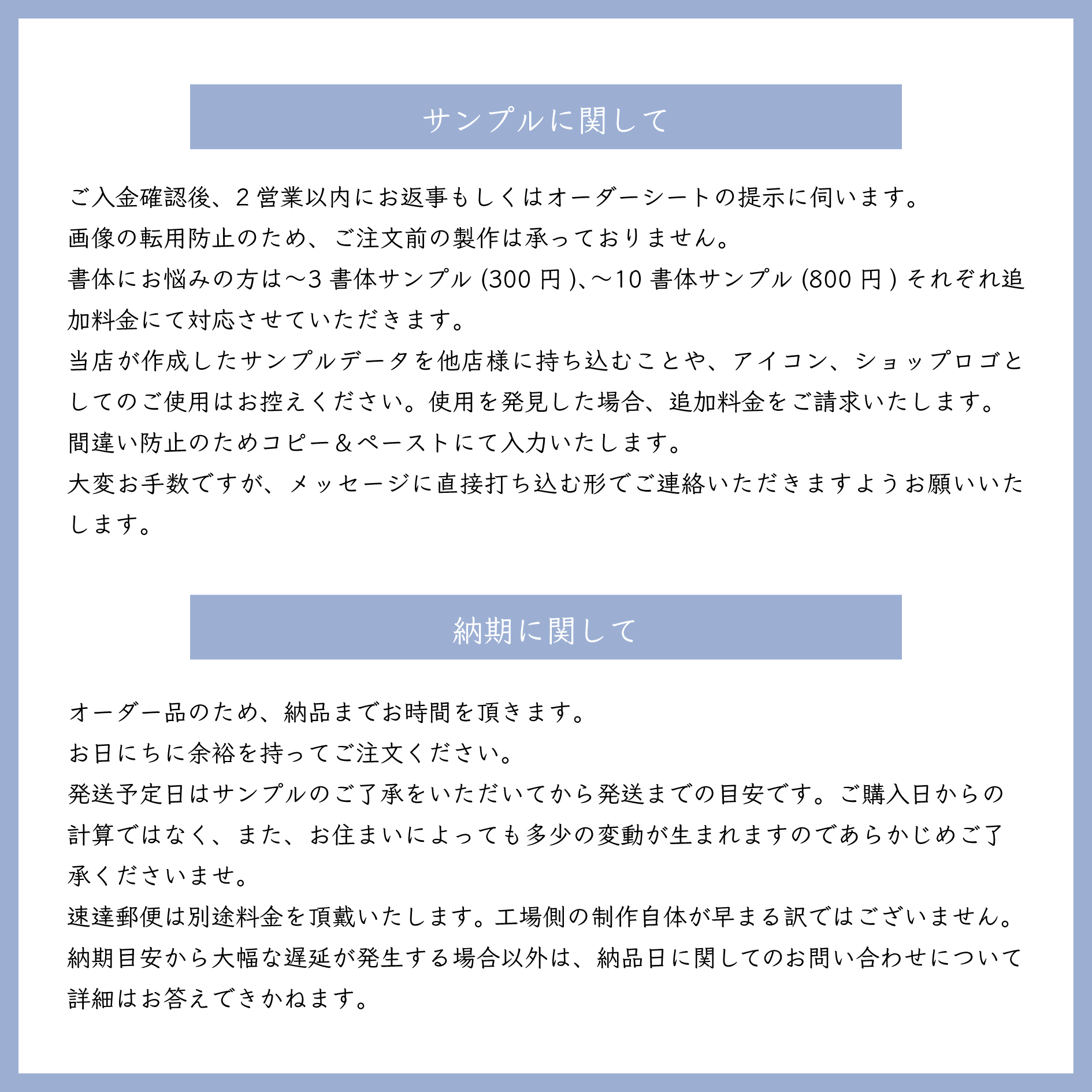 *発注後のキャンセルやご変更はお受けできません。